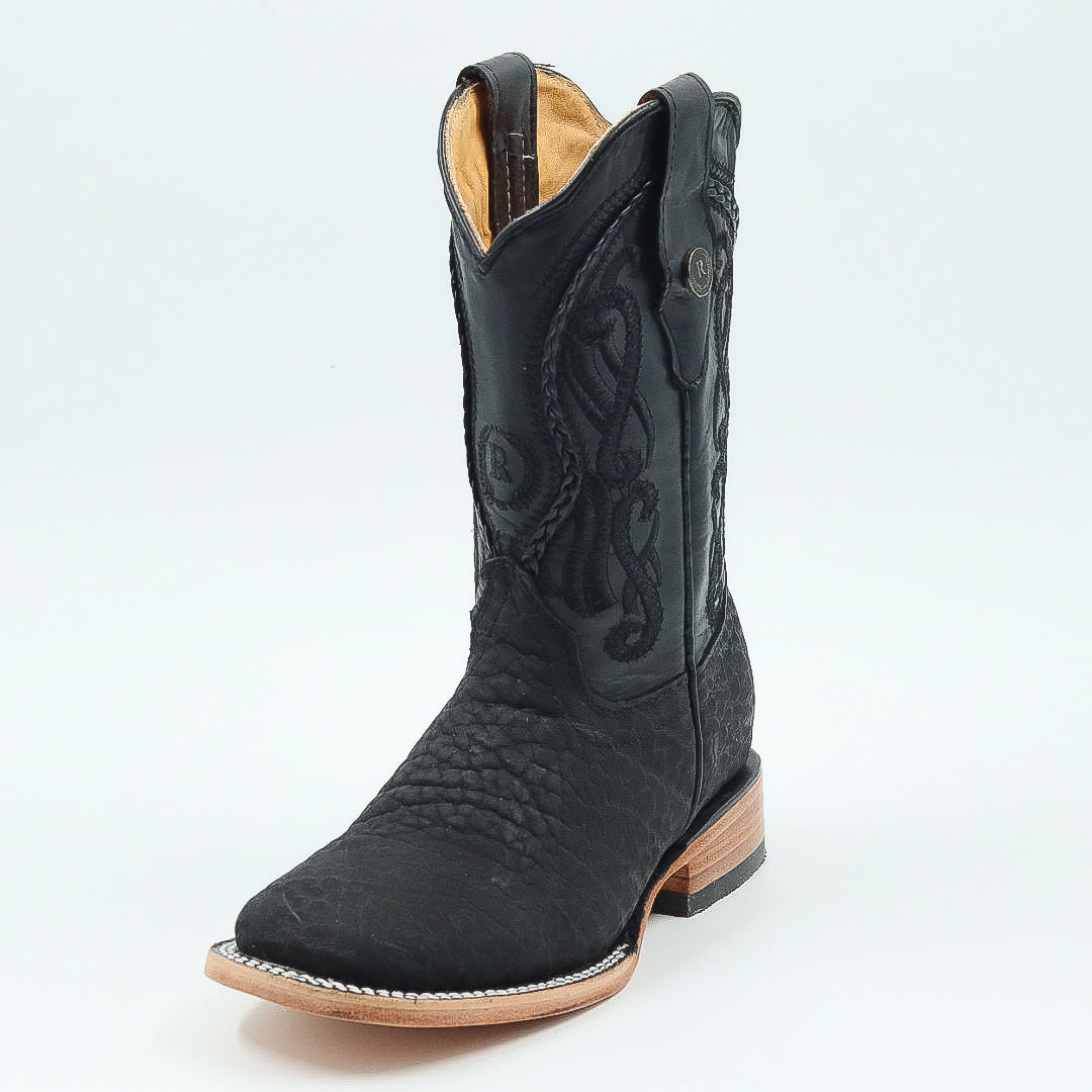 Bota bulldog en piel de cuello de toro color negro .