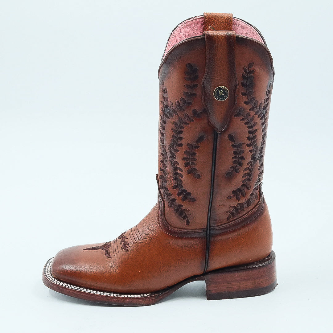 Modelo Brenda en piel de res color miel con difuminados en color chocolate .