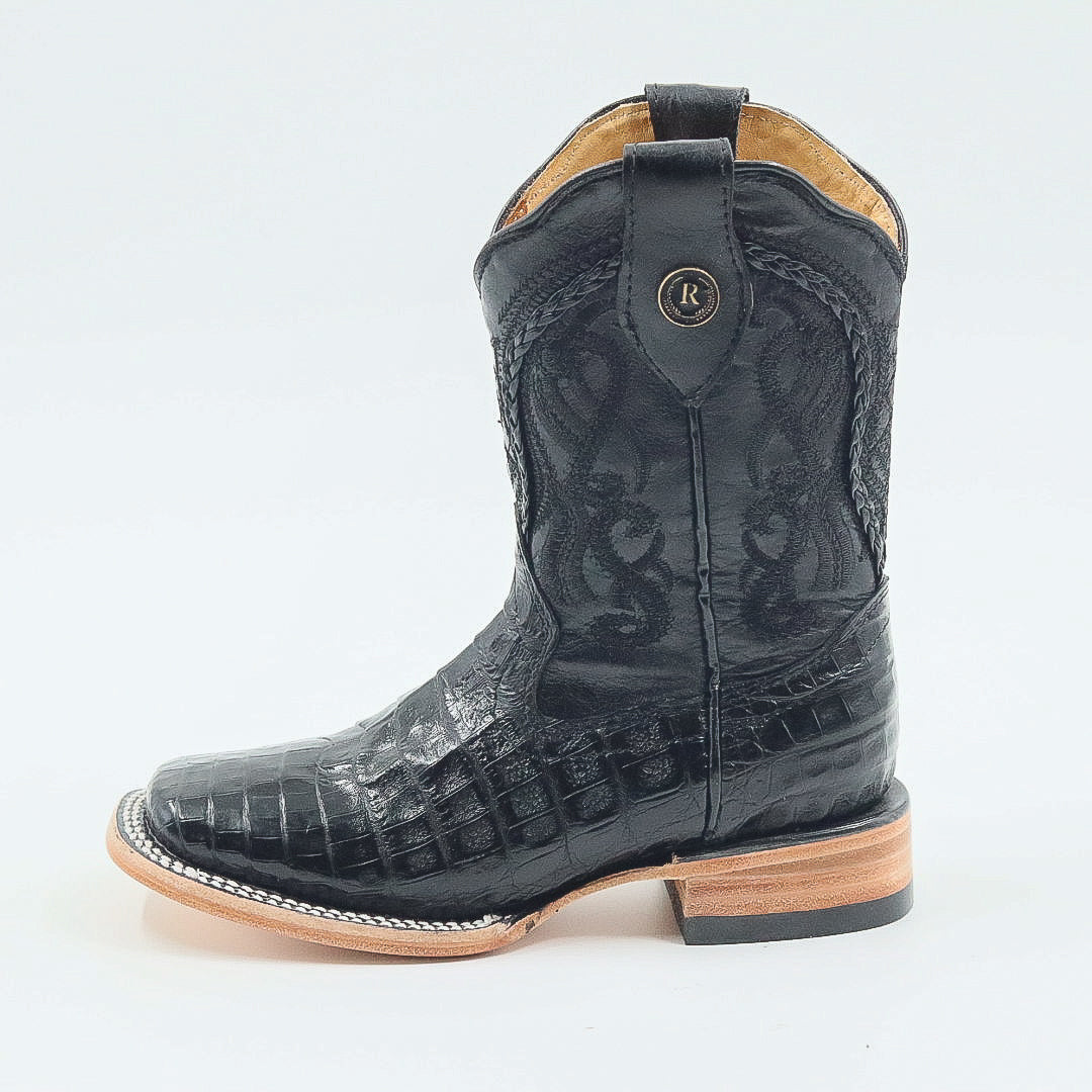 Bota bulldog en panza de cocodrilo color negro , tubo en piel y forro de res .